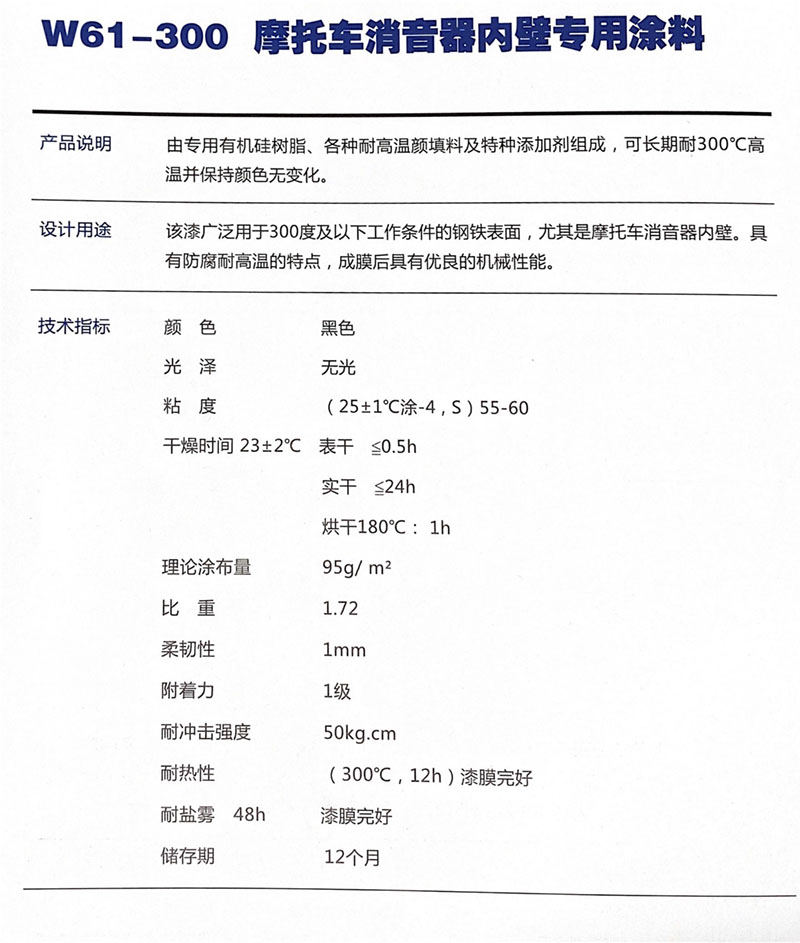 W61-300摩托車消音器內(nèi)壁專用涂料